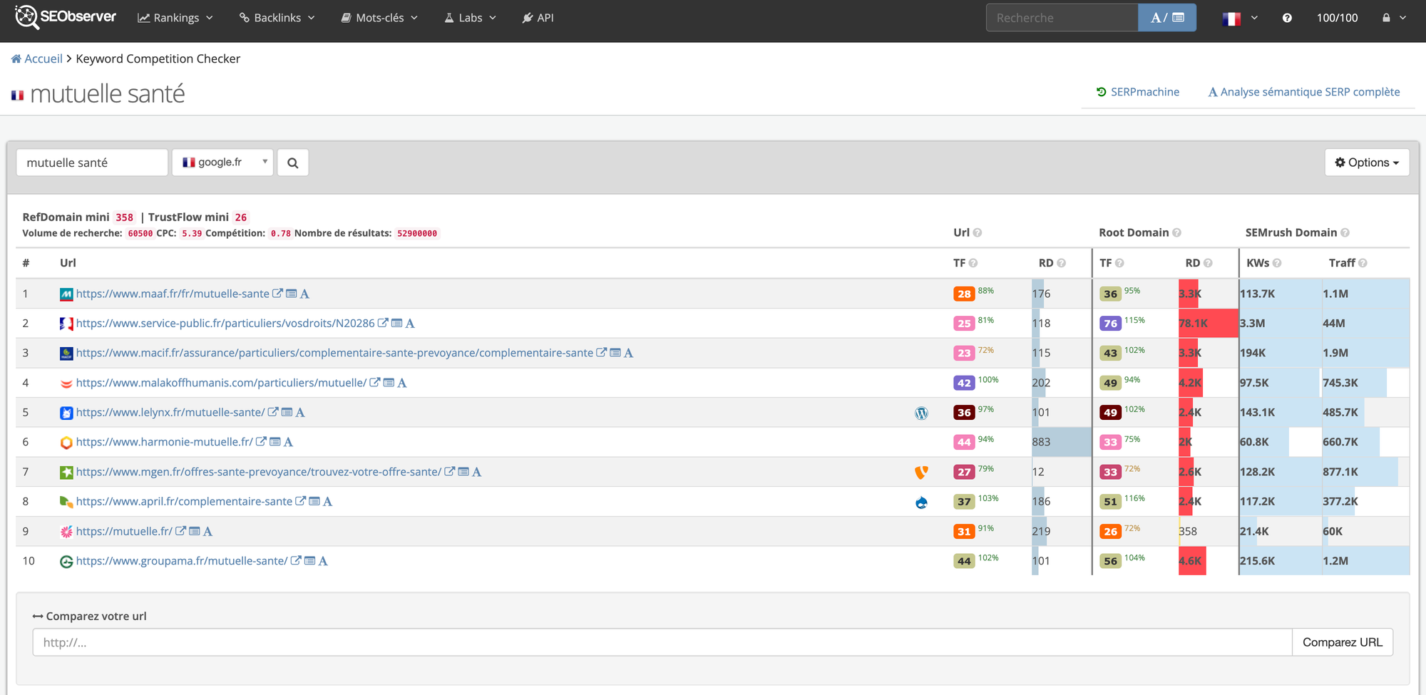 Cet outil SEO est souvent décrit comme un condensé de plusieurs solutions. Analyse des backlinks, audit SEO, campagne Adwords, recherche des mots-clés, concurrence… Ce couteau suisse est apprécié des professionnels et il est mis à jour pratiquement en temps réel.