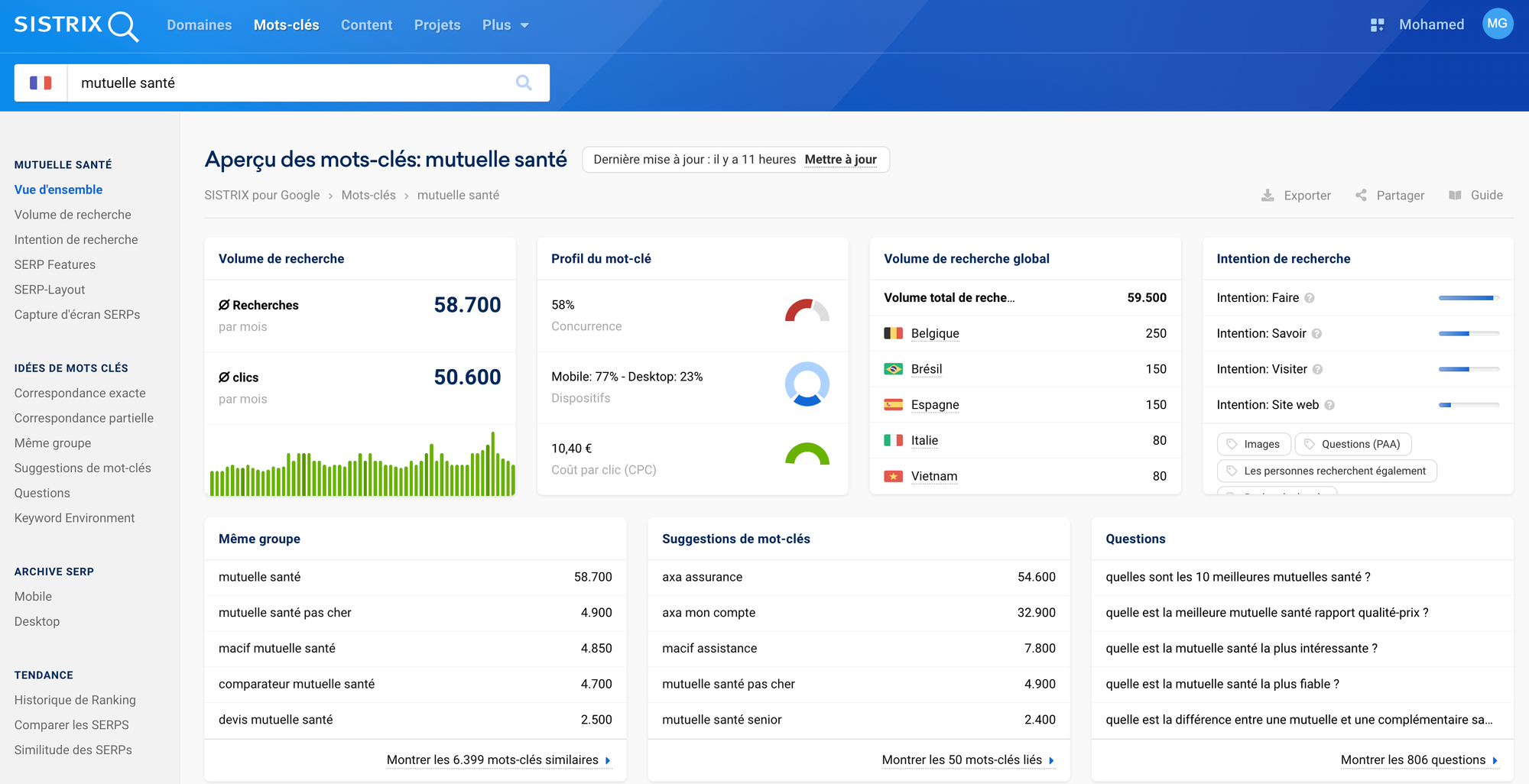Beaucoup plus complet que Majestic et SEObserver en terme de data, il sera votre allié au quotidien pour comprendre et analyser en détails les mots clés et trouver des idées de mots clés, de contenu, suggestions de niches.