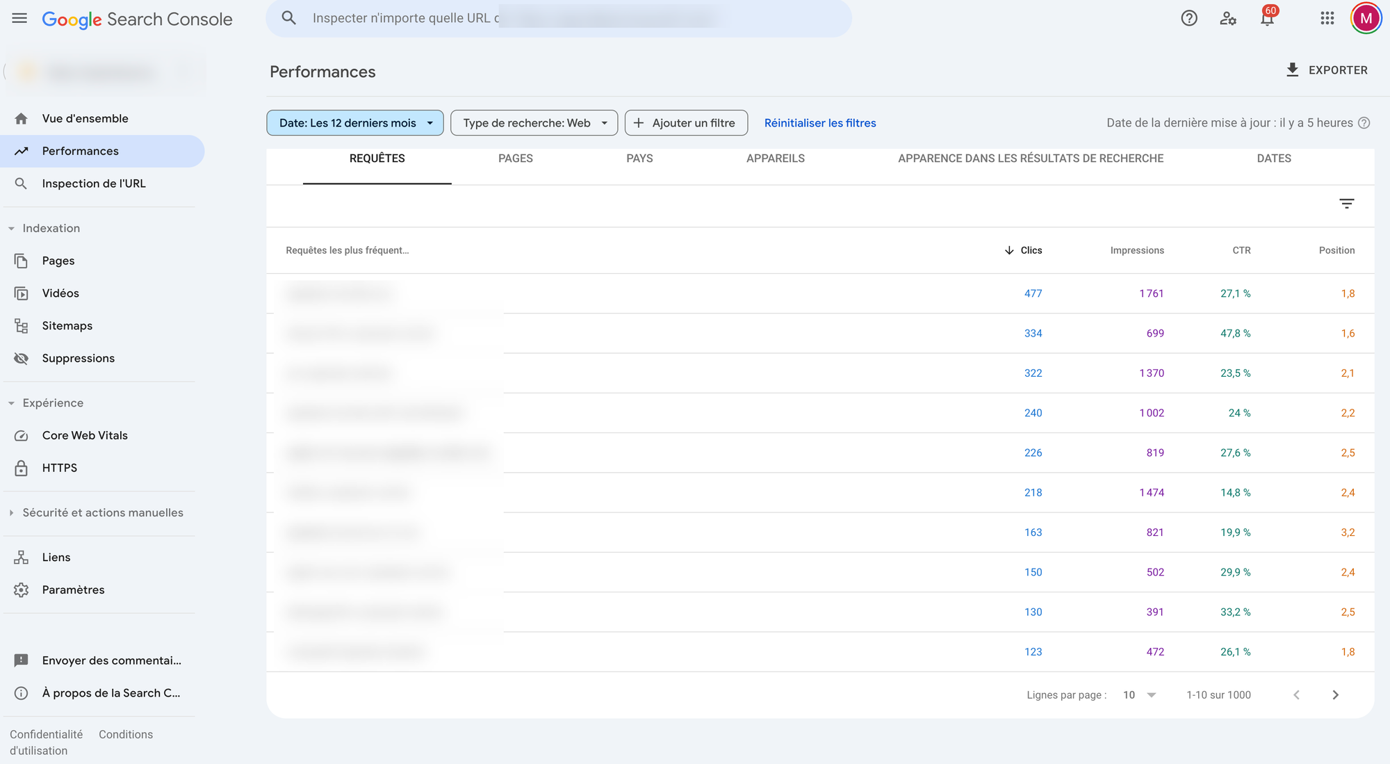 Ce qu'on aime chez Linkuma avec la Search Console, ce sont les mots clés pépites qui ne sont présents que sur votre Search Console et dans les différents outils.