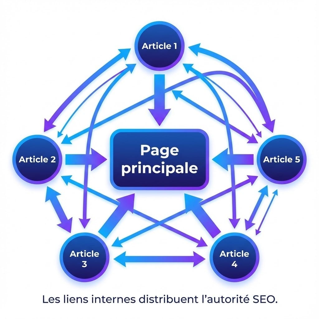 Le maillage interne consiste à créer des liens entre les différentes pages de votre site internet. Cette technique aide Google à comprendre la structure de votre contenu et à identifier vos pages les plus stratégiques. Une bonne stratégie de maillage distribue le jus SEO de manière intelligente à travers l'ensemble de votre domaine.