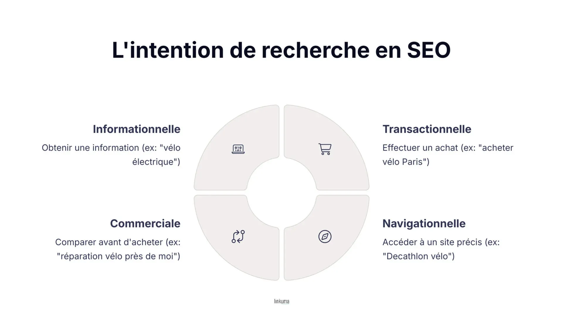 - "acheter vélo Paris" : intention transactionnelle d'achat
