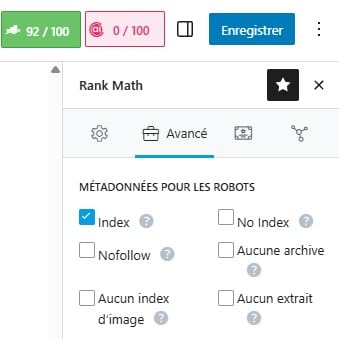 Sur WordPress, des extensions dédiées simplifient toute la gestion. Yoast SEO et Rank Math intègrent une option noindex accessible depuis l'éditeur de chaque page ou article. En quelques clics, vous cochez la case et la balise meta robots s'insère automatiquement dans le code source, sans toucher une seule ligne de HTML.