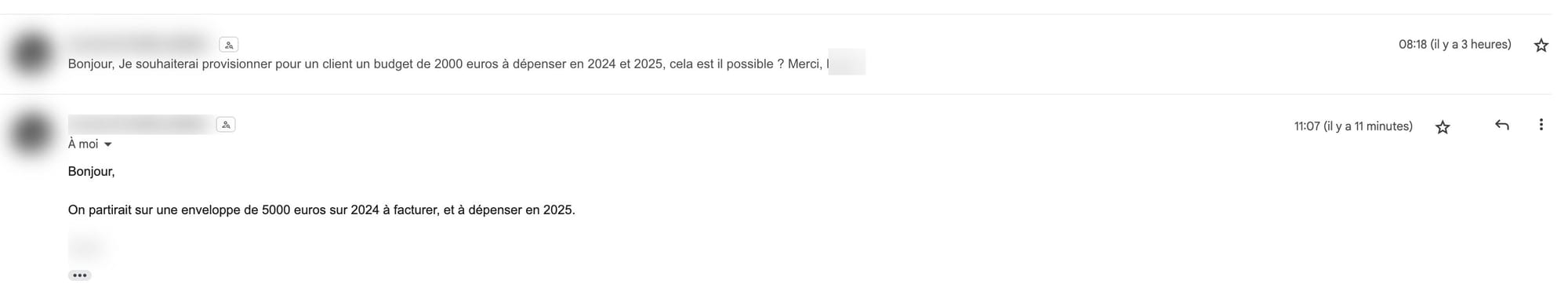 Ou alors F., qui souhaitait finir le budget 2024, avec 5 000€ en délégation :