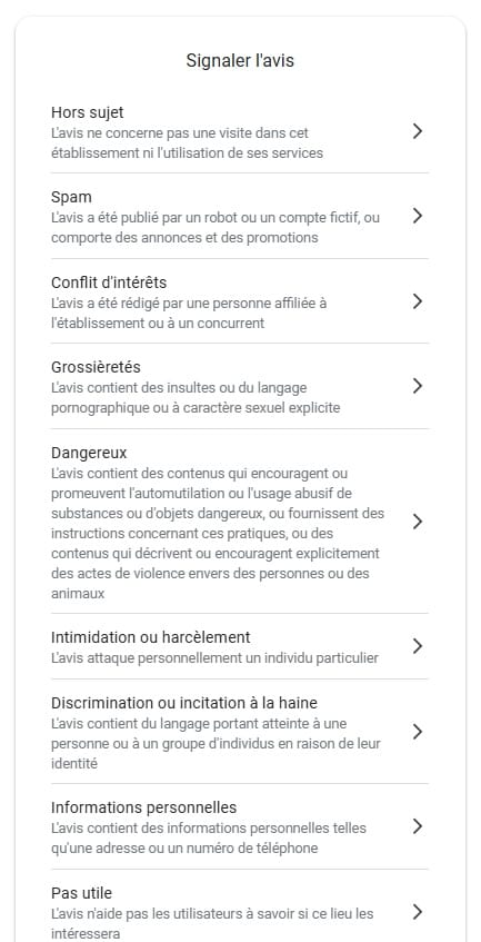 Certains commentaires sortent du cadre habituel et demandent une stratégie adaptée. Les faux avis existent malheureusement, tout comme les commentaires de mauvaise foi qui exagèrent démesurément la réalité. Google a heureusement mis en place des outils de signalement pour traiter ces situations délicates.